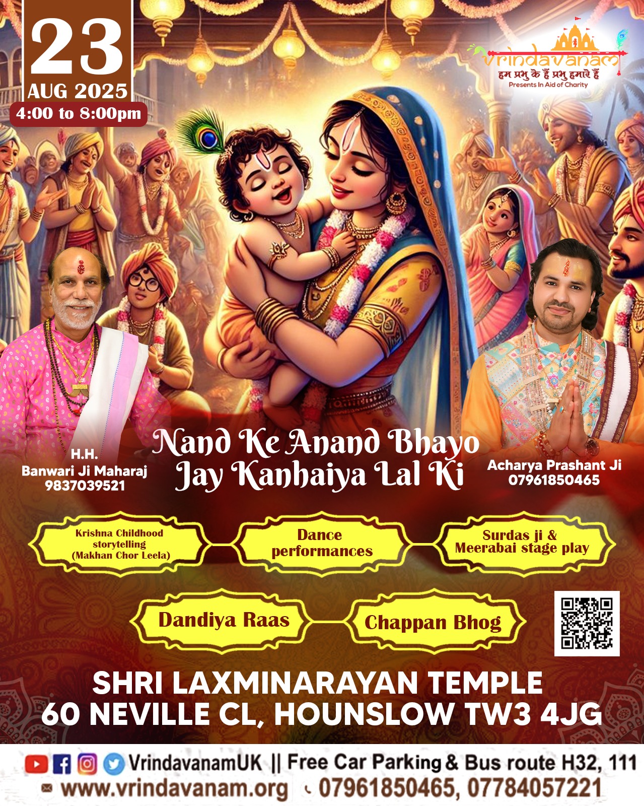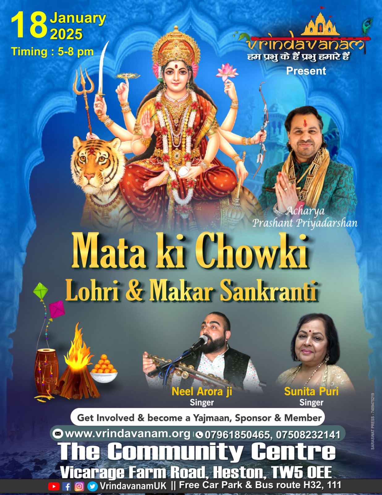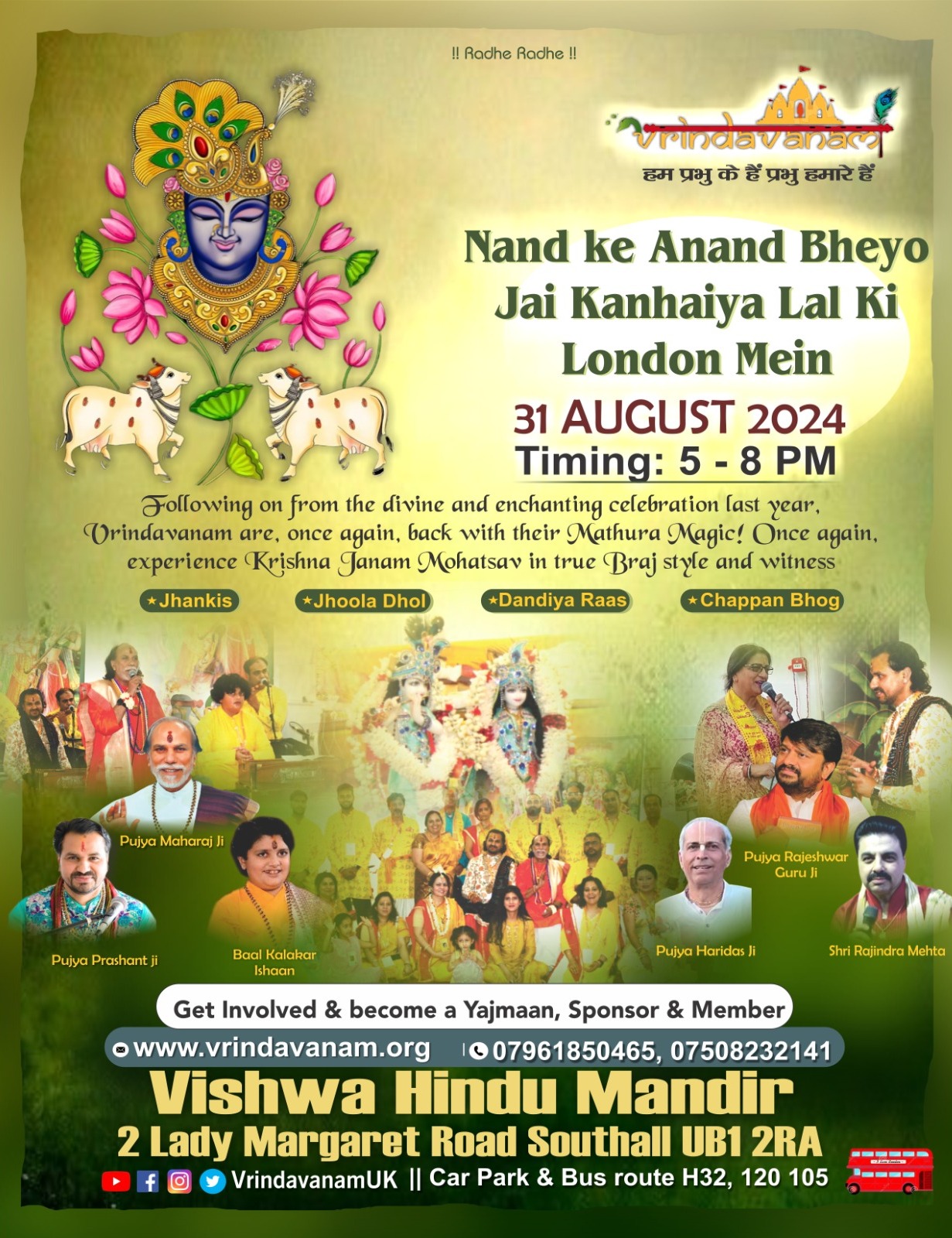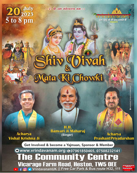 London Vicarage Farm Road, Heston, TW5 0EE, London, United KingdomVrindavanam London warmly invites you to a special evening event on July 20, 2023, from 5 to 8 PM, featuring "Shiv Vivah & Mata ki Chowki." This enchanting event will immerse attendees in the divine and sacred rituals celebrating the celestial marriage of Lord Shiva and Goddess Parvati, followed by a soulful Mata ki Chowki, […]